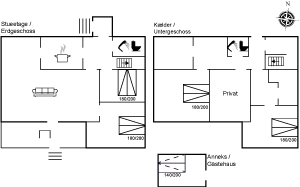 Im Untergeschoss gibt es einen eigenen Eingang, 2 Zimmer mit Doppelbetten, eine Küche mit Kühl-/Gefrierschrank, Mikrowelle, Geschirrspülmaschine, Ceran-Kochfeld und Umluftofen, Esszimmer, Badezimmer mit Toilette und Waschbecken, Duschabteilung mit Duschnische.