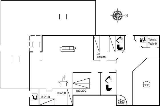 | Water distance 500 m | 6 Pers. | 120 m2 | 3 bedrooms |