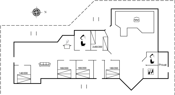 | Water distance 600 m | 9 Pers. | 165 m2 | 5 bedrooms |