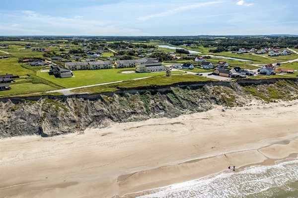 Ferienwohnung in Nr. Lyngby, ein schönes Ferienhausgebiet an der Westküste zwischen Løkken und Lønstrup. Nr. Lyngby ist für ihr Steilufer und den schönen Sandstrand bekannt. Zur Ferienanlage gehört ein gemeinsamer Swimmingpool sowie ein Kinderpool, die im Zeitraum ultimo Juni bis ultimo August zur Verfügung stehen. Guter Spielplatz für die Kinder auf dem Gemeinschaftsareal. Im Gemeinschaftsgebäude stehen Waschmaschinen und Wäschetrockner kostenlos zur Verfügung. An den schönen Sommerabenden können Sie den Sonnenuntergang genießen. Vom Grundstück gibt es eine prachtvolle Aussicht über das Wasser und die Küste.