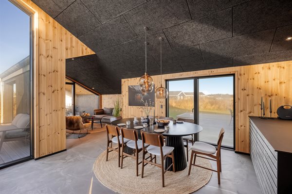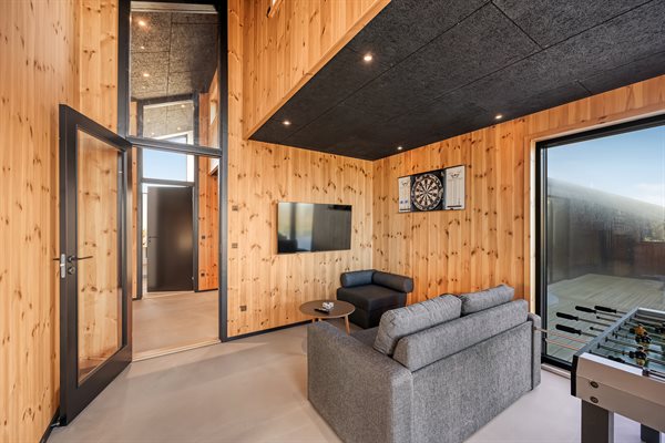 Das Haus ist mit einem hellen Wohnzimmer mit großen Fensterpartien und direktem Zugang zur großen, nach Westen ausgerichteten Terrasse, einer modernen Küche mit Essbereich und Ausgang zur nach Süden ausgerichteten Terrasse sowie einem Raum mit Platz fürs gemütliche Beisammensein und Spiele eingerichtet.