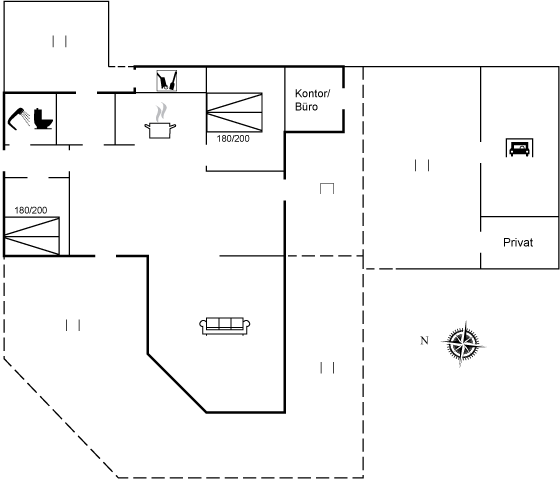 Es gibt Terrassen nach Osten, wo du deinen Morgenkaffee genießen und zusehen kannst, wie die Sonne langsam aufgeht und sich ihren Weg nach Westen bahnt – wo du sie dann hinter den Dünen untergehen sehen kannst. Du kannst auch einen Spaziergang auf die Dünen machen und die Sonne ins Bett begleiten, bevor du selbst schnell zurück aufs Sofa gehst und dich am Kaminofen wärmst.