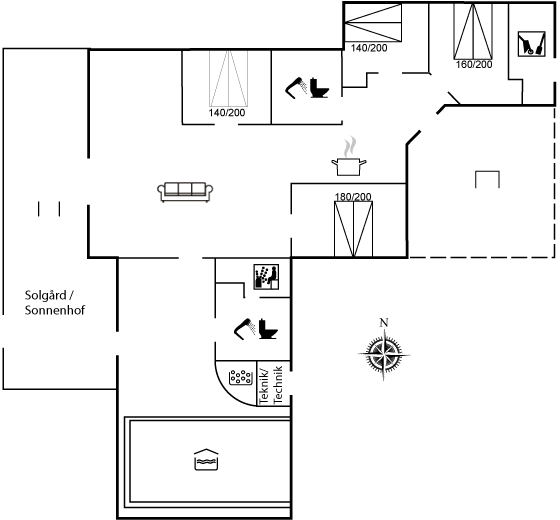 Schönes, geräumiges Ferienhaus durch die Jahre renoviert und modernisiert. Das Haus liegt auf einem Naturgrundstück mit niedriger Bewachsung in ruhiger und kinderfreundlicher Umgebung sowie Hindernisbahn auf dem Grundstück. Großes offenes Obergeschoss mit 4 Schlafplätze und Sitzsäcke.