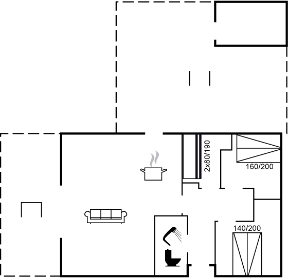 Das Haus hat einen durchdachten Grundriss, der eine optimale Nutzung jedes Quadratmeters ermöglicht. Die offene Wohnküche und der Wohnbereich bilden den natürlichen Treffpunkt, wo echte Urlaubsstimmung aufkommt.