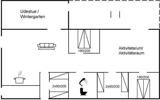 Das Ferienhaus wurde 2023 komplett renoviert und präsentiert sich modern mit hochwertigen Materialien. Die Einrichtung umfasst vier schöne Schlafzimmer sowie eine helle Wohnküche. Vom Wohnzimmer aus habt Ihr Zugang zu einem gemütlichen Wintergarten durch eine große Schiebetür, die Euch außerdem weiter in den Garten führt.