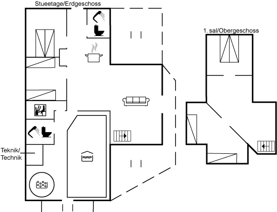 Das Wohnzimmer ist mit Ledercouch, Kaminofen, 55" Smart-TV mit eingebauten Chromecast. Ferner Gemeinschaftsantenne und kabellose Internetverbindung bis 200/200 Mbit. Im ersten Stock "Fatboy" Sitzsäcke, zusätzliches TV und Tischfußballspiel. Kombi-Waschmaschine/Trockner und Kühl- / Gefrierschrank befinden sich im "Hauswirtschaftsraum" im beheizten Schuppen.