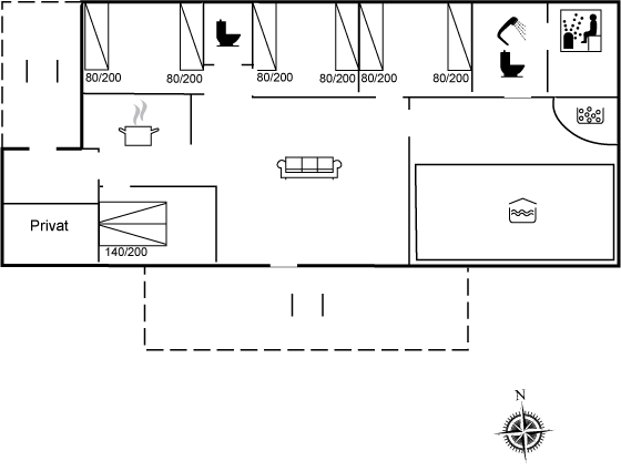 Das Haus ist funktional eingerichtet und bietet genügend Platz, selbst für die große Familie. Die Küche ist gut ausgestattet mit vielen Annehmlichkeiten, und vom geräumigen, nett möblierten Wohnzimmer hast du direkten Zugang zu einer schönen, nach Südwesten ausgerichteten Terrasse. Außerdem verfügt das Haus über ein Badezimmer und eine Gästetoilette.
