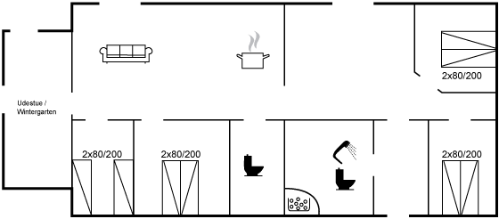 Das Haus verfügt über vier Schlafzimmer, einen großen Küchen- und Aufenthaltsbereich sowie ein Wohnzimmer mit Kaminofen und Sofaecke. In einem der beiden Badezimmer findest du einen Whirlpool, in dem du entspannen und die Massagefunktionen genießen kannst.
