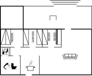 Sommerhuset er egnet for 6 personer samt 1 barn opp til 3 år. Ferieboligen har et bebodd areal på 70 m² og er bygget i 1984. I 2011 gjennomgikk ferieboligen en delvis renovering. Én liten hund tillatt. Ferieboligen er utstyrt med varmepumpe. Ferieboligen har vaskemaskine. Frysekapasitet på 60 liter. Det er i tillegg vedovn. Til de små er det 1 stk. barnestol.