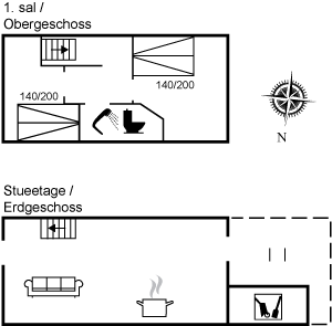 Ein schönes und gemütlich eingerichtetes Ferienhaus. Der 1. Stock ist mit zwei Schlafräumen, Badezimmer und eine Leiter, die in das offene Obergeschoss führt, eingerichtet.Terrasse gegen Westen. Gemeinsame Sandbox und Schaukel verfügbar.