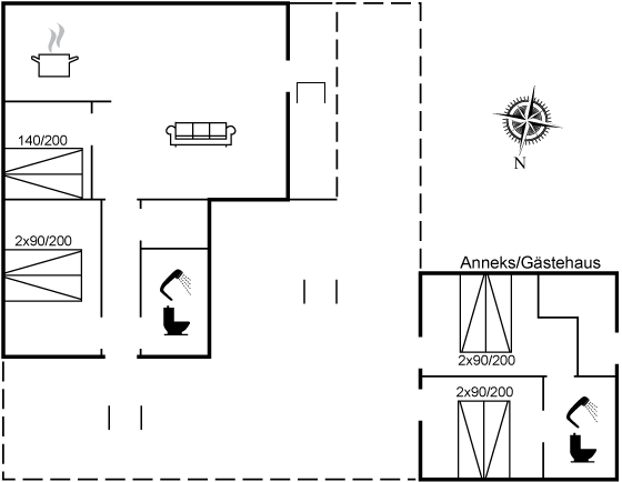 Ein schönes Ferienhaus in ruhiger Umgebung mitten in Arrild Ferieby. Hier gibt es reichlich Platz für 2 Familien, da es neben dem eigentlichen Ferienhaus auch ein gutes Gästehaus gibt, das mit 2 Schlafzimmern und eigenem Badezimmer eingerichtet ist.