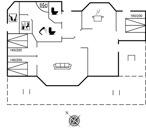 Gepflegtes Ferienhaus in einer Sackgasse, dicht an kinderfreundlichem Badestrand gelegen. Offenes Obergeschoss mit 2 Schlafplätzen auf Matratzen.