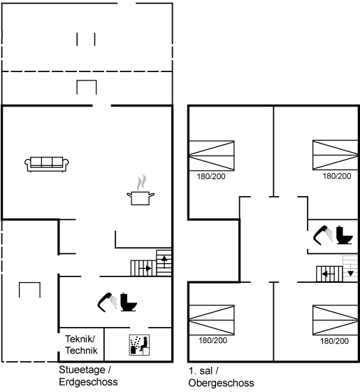 Das Ferienhaus bietet außerdem zusätzlichen Komfort in Form einer Sauna in einem der Badezimmer – perfekt nach einem Tag am Strand, nach dem Schwimmen oder nach langen Spaziergängen am Wasser.