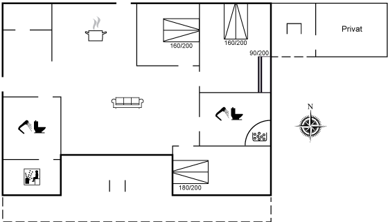Ein schönes, neu erbautes Ferienhaus in dem beliebten Ferienhausgebiet Helberskov. Das Haus liegt in der Nähe des Meeres auf einem Grundstück, das von Bäumen umgeben ist und wo man sich daher ungestört aufhalten kann.