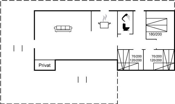 Hinweis: In den zwei Zimmern mit Etagenbetten ist das obere Bett ein Einzelbett, während das untere Bett 120 cm breit ist.