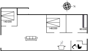 Dieses gemütliche Ferienhaus liegt zwischen Hou und Hals auf einem großen, eingezäunten Grundstück mit Rasen und Spielgeräte für die Kinder. Zum Haus gehört ein große, teilweise überdachte Terrasse mit Gartenmöbeln und Sonnenliegen.