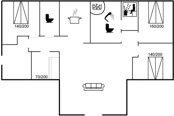 Im Inneren präsentiert sich das Ferienhaus hell und modern und ist ideal für eine Familie mit Kindern. Es gibt außerdem die Möglichkeit, zum Beispiel die Großeltern mit in den Urlaub einzuladen. Der Mittelpunkt des Hauses ist die große, schöne Wohnküche. Die großen Fenster sorgen für einen guten Lichteinfall. Vom Wohnzimmer aus hast du direkten Zugang zur schönen Terrasse.