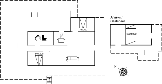 Ein großes Plus ist das geräumige Gästehaus mit zusätzlichen 16?Quadratmetern, das mit einer Wärmepumpe und bequemen Betten ausgestattet ist – ideal für zusätzliche Gäste oder für alle, die etwas mehr Privatsphäre wünschen.