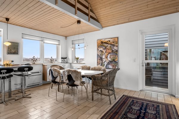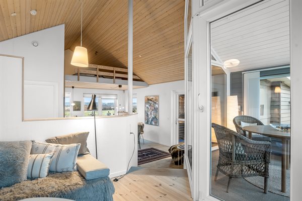 Im Inneren präsentiert sich das Haus in gutem Zustand mit einer sehr guten Raumaufteilung auf zwei Ebenen. Das Haus eignet sich ideal z. B. für eine Familie mit 2–3 Kindern oder für ein Paar, das seinen Urlaub in dieser fantastischen Umgebung verbringen möchte. Das Herz des Hauses ist die schöne offene Wohnküche, die in den Wohnbereich integriert ist. Von hier aus kannst du die herrliche Aussicht genießen, und es gibt einen direkten Zugang zur schönen Terrasse, die zum Wasser hin ausgerichtet ist.