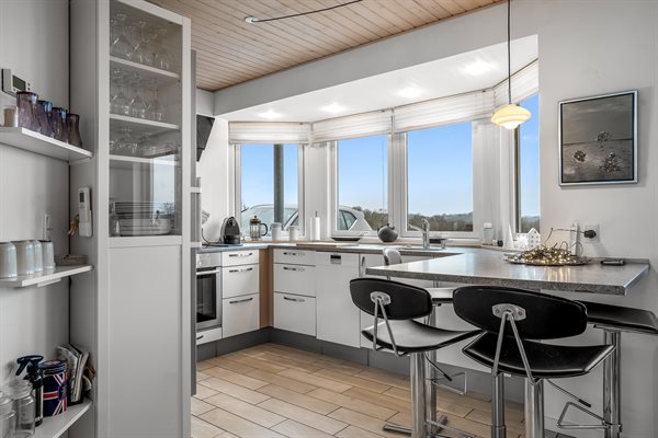 Dieses schöne und gut eingerichtete Ferienhaus hat eine absolut fantastische Lage im attraktiven und naturschönen Feriengebiet bei Bøgeskov Strand – direkt an der wunderschönen Küstenlinie des Kleinen Belts. Das Ferienhaus liegt erhöht und bietet einen sehr schönen Panoramablick auf das Wasser, den du sowohl vom Hausinneren als auch von der Terrasse aus genießen kannst - eine bessere Lage ist in diesem Feriengebiet kaum zu finden.