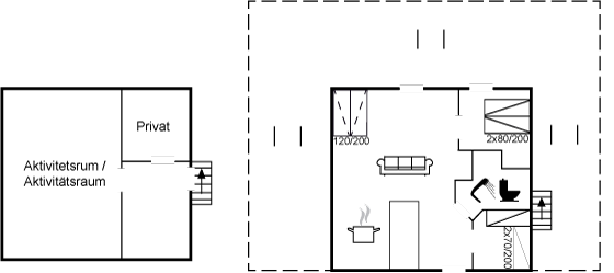 Das Haus ist mit zwei Schlafzimmern eingerichtet sowie einer zusätzlichen Aufbettungsmöglichkeit auf einer Schlafouch im Wohnzimmer.