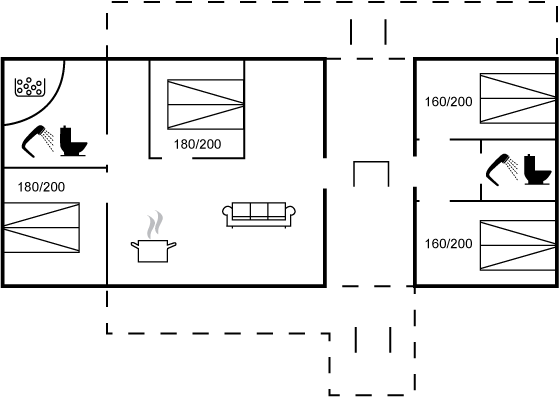 Dieses spannende Ferienhaus ist in zwei separate Bereiche unterteilt und daher besonders gut geeignet für beispielsweise zwei Familien, die gemeinsam Urlaub machen möchten, dabei aber dennoch etwas Privatsphäre schätzen. Das Haus verfügt über einer großen und gemütlichen Wohnküche, der zum gemeinsamen Kochen und Zusammensein einlädt. Zwischen den beiden Wohnbereichen befindet sich eine große überdachte Fläche, die als zusätzlicher Treffpunkt dient und das Leben im Freien bei jedem Wetter verlängert.