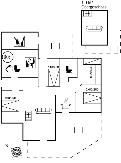 Wunderschönes Ferienhaus in erster Reihe im beliebten Gebiet Mosegården südlich von Faaborg. Vom Haus aus ist es nur ein kurzer Weg zum Strand, wo in den Sommermonaten ein Badesteg aufgestellt ist. Der große Gemeinschaftsspielplatz liegt ebenfalls in der Nähe des Hauses, was dieses Ferienhaus ideal für Familien mit Kindern macht – es gibt auch ein Etagenbett im Haus.