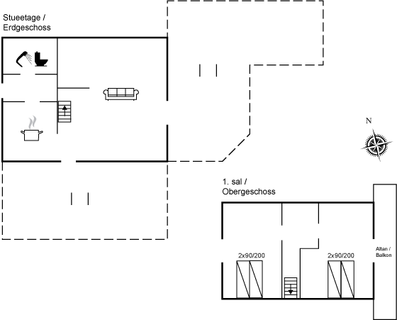 Das Haus ist gemütlich eingerichtet mit Wohnzimmer, Küche und Badezimmer im Erdgeschoss sowie Schlafzimmern im Obergeschoss, wo sich auch ein überdachter Balkon befindet.