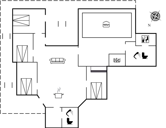 Die Schlafplätze verteilen sich auf 3 Zimmer mit Doppelbett sowie 1 Zimmer mit Doppelbett und Etagenbett. Das Haus liegt auf einem schönen, eingezäunten Grundstück mit einer großen und schönen nach Süden ausgerichteten Holzterrasse, auf der man den ganzen Tag über die Sonne genießen kann. Darüber hinaus stehen ein eingegrabenes Trampolin, eine gemütliche Lagerfeuerstelle, eine neu gebaute Windschutzhütte, ein Sandkasten für die Kleinen, 2 Fußballtore, eine Schaukel und 2 Kugelgrills zur Verfügung.