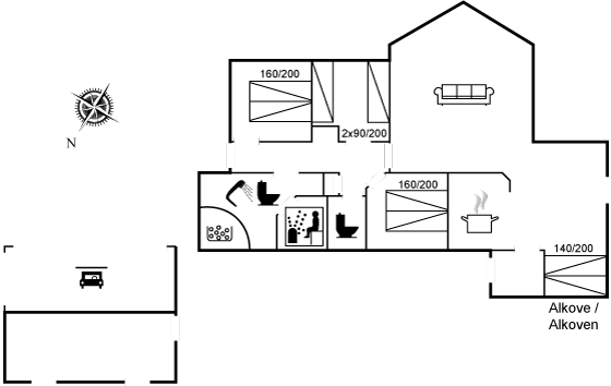 Nur 50 Meter vom Wasser und Deich entfernt, bietet das Haus von mehreren Stellen aus – unter anderem vom Wohnzimmer und dem offenen Küchen-Essbereich – einen Blick auf den Garten und den Deich. Es gibt eine herrliche Terrasse, die sowohl überdacht als auch offen ist. Außerdem steht am Ferienhaus eine Außendusche zur Verfügung, ideal nach einem Sprung ins herrliche Meer oder einen Tag am Sandstrand.