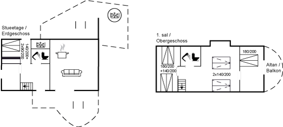 Das Haus ist groß und geräumig – ideal, um gemeinsam mit Familie und Freunden eine schöne Zeit zu verbringen. Im Anschluss an die gute Wohnküche findest du eine gemütliche Sofaecke mit Sesseln. Es gibt Ausgänge zu Terrassen auf beiden Seiten des Hauses. Auf der nordseitigen Terrasse eröffnet sich dir die volle Aussicht – hier findest du auch einen Outdoor-Whirlpool und eine Außenküche.