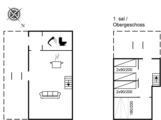 Die Ferienunterkunft erstreckt sich über zwei Etagen und befindet sich auf dem Hof „Gildesgård“, verfügt jedoch über einen eigenen Eingang, Garten und Parkplatz. Du kannst morgens deinen Kaffee auf dem schönen Balkon im Obergeschoss oder auf der Terrasse vor dem Haus genießen.