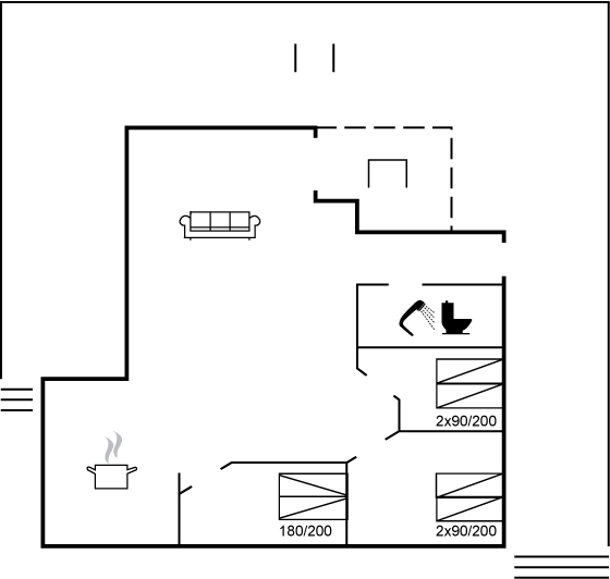 | Water distance 100 m | 6 Pers. | 89 m2 | 3 bedrooms |
