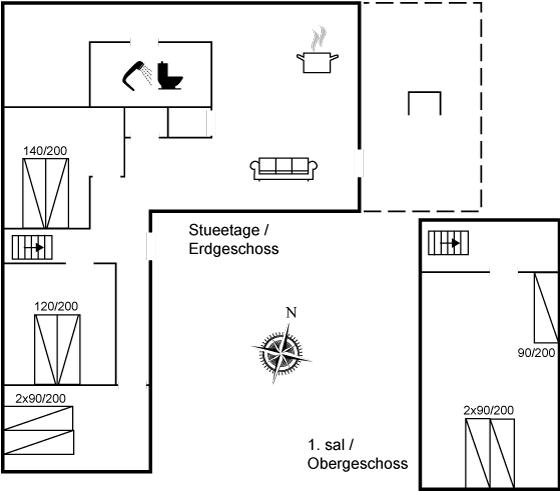 Das Ferienhaus ist einfach, aber nicht ohne Charme eingerichtet. Die Küche und das Esszimmer sind der zentrale Treffpunkt des Hauses, hier gibt es Platz zum Kochen und Entspannen. Beachte, dass das Haus nur ein Badezimmer hat, das sich jedoch zentral im Haus befindet. Der Garten ist umzäunt, und die überdachte Terrasse bietet dir viele Möglichkeiten für schöne Stunden im Freien, auch wenn es ein wenig tröpfelt.
