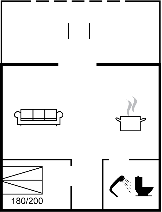 Die Wohnung präsentiert sich mit einem hellen Interieur, bei dem der Platz optimal genutzt ist, sodass sogar Raum für einen offenen Obergeschoss mit steiler Treppe entstanden ist. Neben dem Schlafzimmer gibt es auch eine gemütliche Sofaecke im Wohnzimmer, die du als Doppelbett nutzen kannst, falls du nicht auf dem offenen Obergeschoss übernachten möchtest. Gut ausgestattete Küchenzeile und Wohnzimmer mit direktem Zugang zur Terrasse, die gut abgeschirmt ist.