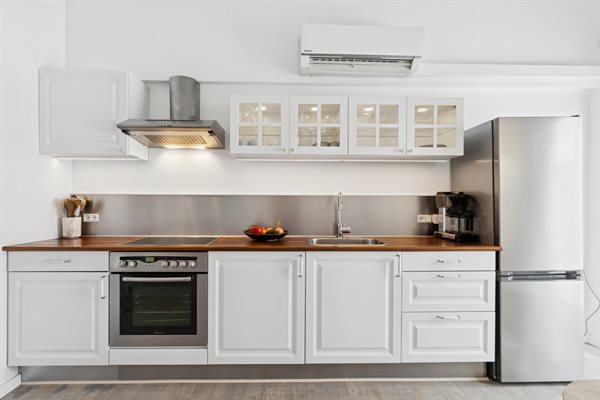 Die Wohnung ist sehr gepflegt und es wurde kürzlich eine neue Küche installiert. Auf beiden Seiten der Wohnung gibt es Terrassen, sodass du die Aussicht entweder auf den stimmungsvollen Innenhof oder auf das nahegelegene Erlebniszentrum NaturBornholm genießen kannst.