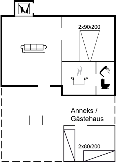 Die Familie kann problemlos einen gewöhnlichen Aufenthalt im Haus ohne Golfschläger verbringen, da es ja nicht weit zu guten Erlebnissen in der Stadt Gudhjem ist, die mit ihren hügeligen Gassen und Straßen an sich schon ein eigenartiges Erlebnis ist. Restaurants, Räucherei, Supermarkt und kleine Geschäfte sowie vor allem das berühmte Gudhjem Softeis direkt am Hafen. Eine Fahrt mit der kleinen Fähre zur Christians Ø könnte auch verlockend sein - eine Reise zurück in die Zeit zur östlichsten Bastion Dänemarks - man spürt fast die Kanonenschüsse.