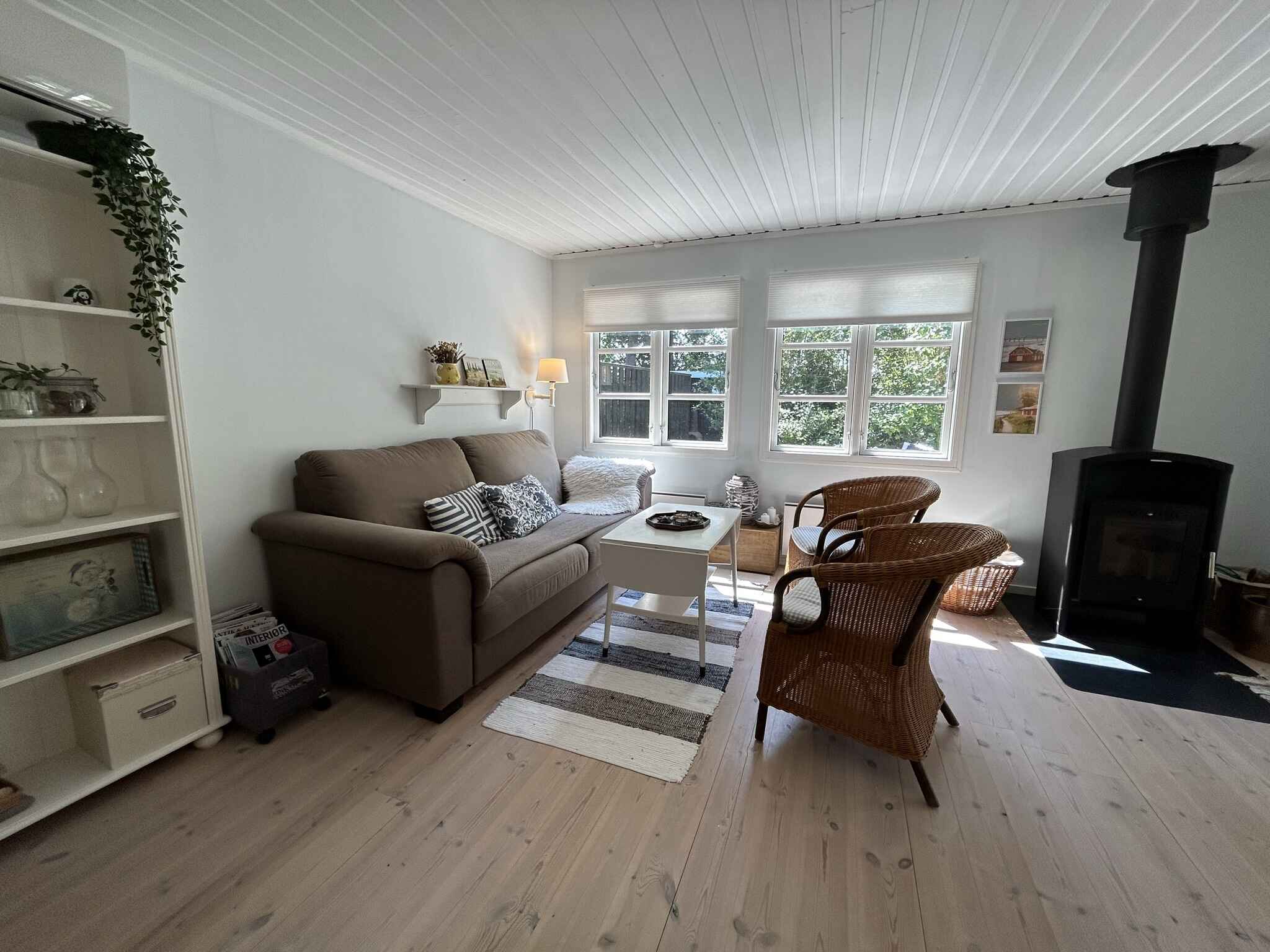 Gemütliches, kleines, idyllisches Ferienhaus mit 65 m², laufend renoviert, auf einem 1.400 m² großen, ruhigen Grundstück mit alter Randbepflanzung. Rasen rund ums Haus, mehrere geschützte Ecken, Feuerstelle, zwei Holzterrassen – eine davon überdacht. Nur ca. 375 Meter vom Strand im naturnahen Ferienhausgebiet bei Stoense Havn auf Nordlangeland entfernt.