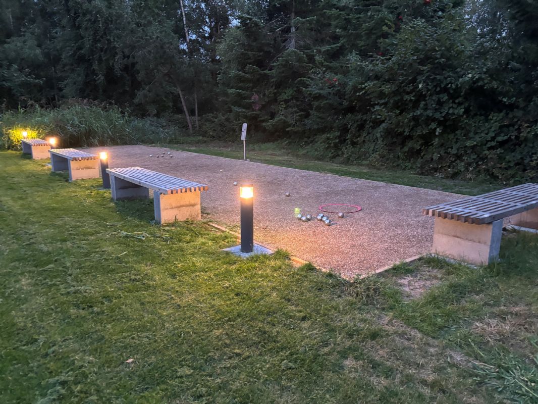 Foosball, Ping-pong indoor, Toys for indoor use, Campfire area, Petanque field, Petanque balls