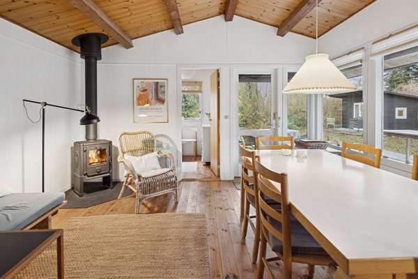 Ein Ferienhaus in Dronningmølle mit Platz zum gemütlichen Beisammensein und zur Entspannung – drinne...