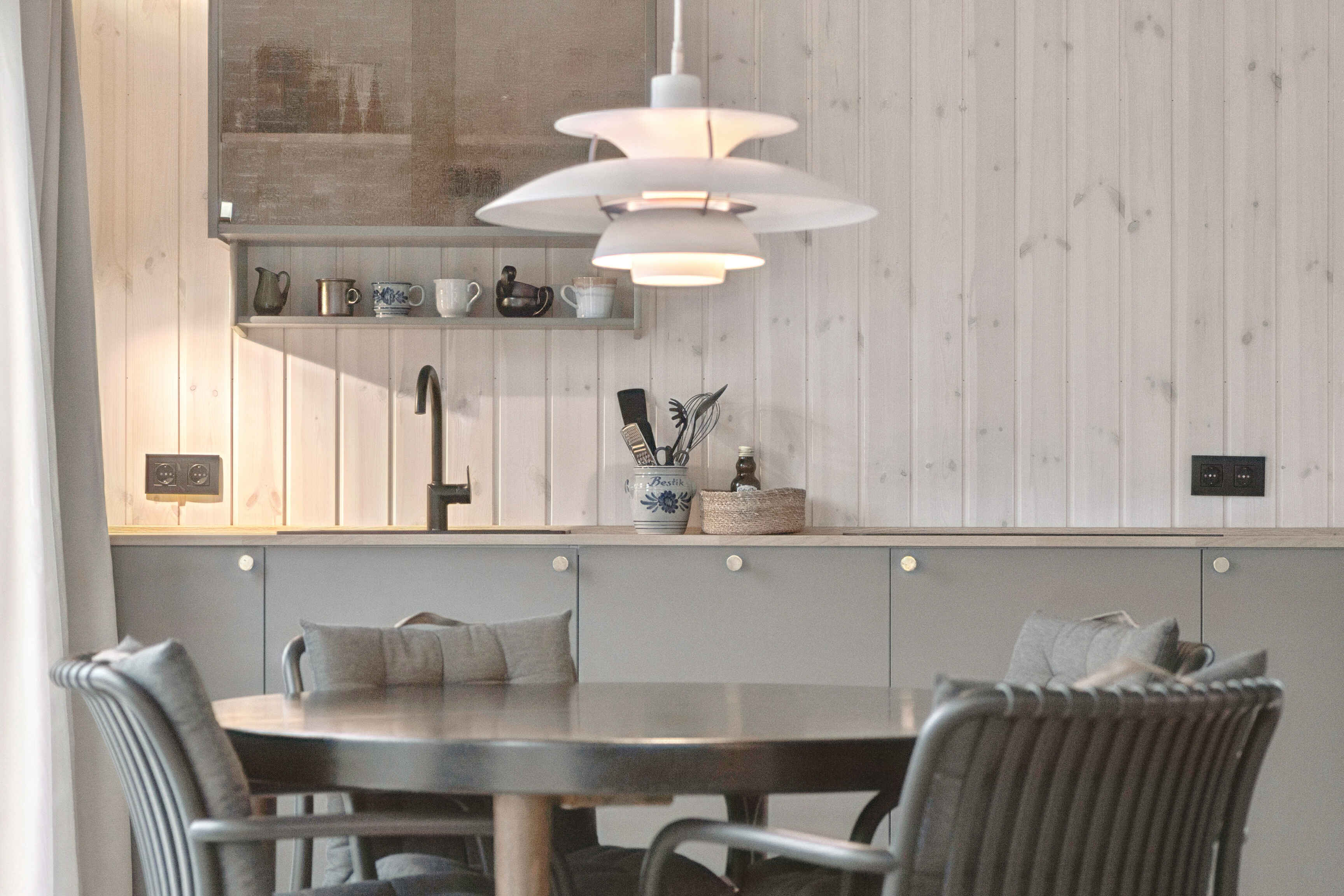 Ferienhaus auf der kleinen Insel Enø in der Nähe von Karrebæksminde und Fjord. Im Haus stehen Küche ...