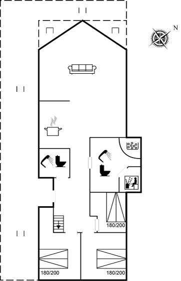 Das Haus ist hell und freundlich eingerichtet und bietet Zugang zu einem offenen Obergeschoss mit guter Deckenhöhe, wo sich 2 der Schlafplätze befinden.