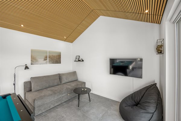 In Strandnähe findest du dieses schöne, neu gebaute Ferienhaus in Nr. Lyngby. Es liegt in naturschöner Umgebung am Ende einer ungestörten Straße in einem bereits etablierten Gebiet. Das Haus befindet sich auf einem Naturgrundstück mit einer großen, schönen Holzterrasse, die dir und deiner Familie viel Platz bietet.
