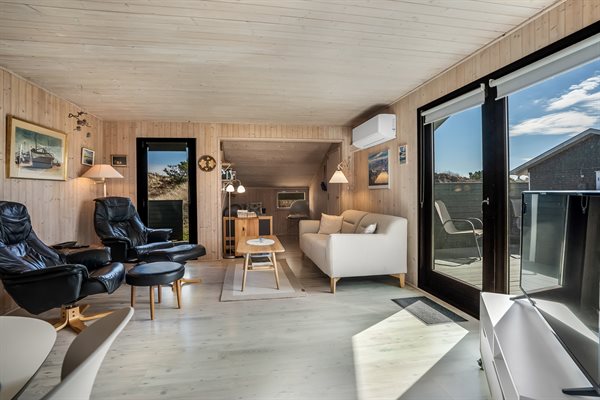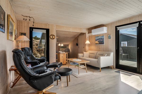Nur einen Steinwurf von der Nordsee entfernt, auf der Svenstibakkevej in Lild Strand, findest du dieses klassische Ferienhaus mit Terrassen, von denen aus du das Rauschen der Nordsee hören kannst.