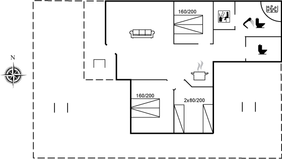 Durch die großen Glasfronten strömt das Licht in den gut eingerichteten Küchen-Wohnbereich, in dem es viel Platz zum Entspannen und gemütlichen Beisammensein gibt – während im Hintergrund das Feuer im Kaminofen knistert. Die große, geschlossene Terrasse sorgt dafür, dass Kinder und Hunde ungestört spielen können, und rund ums Haus gibt es mehrere gemütliche windgeschützte Plätze, wo du dich vor dem Wind geschütz aufhalten kannst - egal aus welcher Richtung er weht.