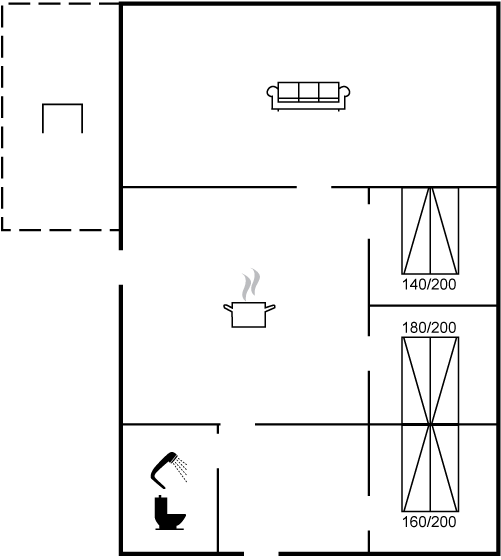 | Water distance 2500 m | 6 Pers. | 90 m2 | 3 bedrooms |