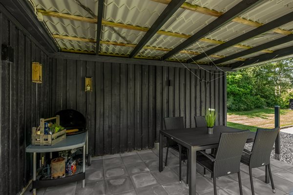 Draußen auf den Terrassen gibt es viele windgeschützte Ecken, und du kannst hier viele Stunden verbringen, während Kinder und Hund auf der großen Rasenfläche spielen oder toben.