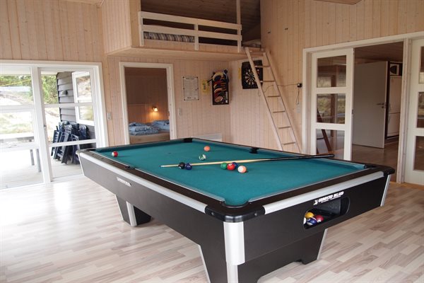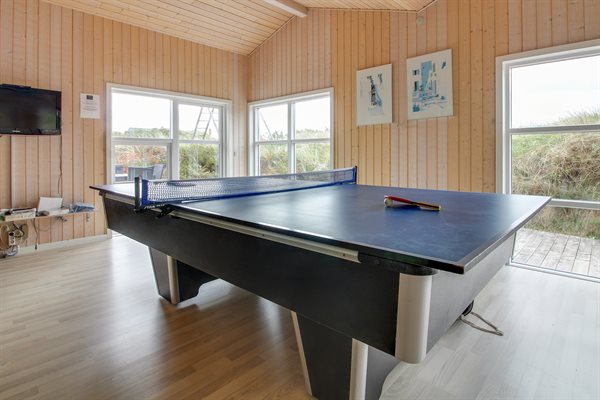 Im Gehabstand von einem der besten Badestrände Dänemarks entfernt liegt dieses herrliche Ferienhaus aus Holz, 1970 gebaut, 2009 renoviert und mit einem Anbau erweitert. Das Haus liegt auf einem 2800 m2 großen Naturgrundstück und zum Haus gehört ein großes, teilweise überdachtes Terrassenareal mit Gartenmöbeln. Schönes neues Badezimmer (2009) mit beheizbarem Fliesenboden, Duschnische, 2-Pers.-Whirlpool und Zutritt zu Sauna. Zusätzliches Badezimmer mit Duschnische. Die helle Küche ist u. a. mit Geschirrspüler und Mikrowelle ausgestattet. Im geräumigen Wohnzimmer das mit schöner Ledergarnitur eingerichtet ist finden Sie Kaminofen, Stereoanlage mit CD-Spieler, DVD-Spieler und 42” Flatscreen-TV mit digitalem Satellitenanschluss. Ativitätsraum mit Billard- und Tischtennistisch sowie Darts. Die Schlafplätze des Hauses verteilen sich auf 3 Zimmer, alle mit Doppelbett. Ferner 2 Schlafplätze im offenen Obergeschoss. An weiterer Ausstattung können kostenlose ADSL-Internetverbindung (Computer ist mitzubringen), 1 zusätzliches TV, Nintendo Wii, Waschmaschine und Wäschetrockner erwähnt werden. Für die jüngsten Feriengäste gibt es Sandkasten und Schaukel auf dem Grundstück. Außerdem gibt es einen schönen, großen Schuppen (9 m2) mit Platz für z. B. Fahrräder. Ein wirklich schönes Ferienhaus, für einen gelungenen Urlaub zu jeder Jahreszeit.