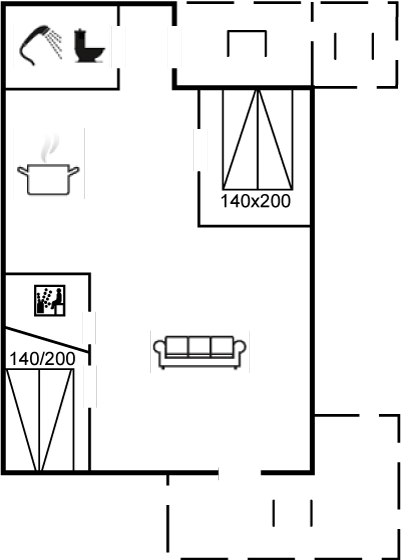 Es ist eine Badezimmer mit Dusche, Fußbodenheizung, Waschmaschine und Wäschetrockner. Sauna. Die Küche mit u. a. Geschirrspülmaschine, Induktionskochfeld und Tiefkühlgerät liegt in Verbindung mit dem Wohnzimmer, das mit u. a. Flatscreen-TV mit Satellitenanschluss, Kaminofen, DVD-Spieler und Bluetooth-Lautsprecher (Sonos) ausgestattet ist.