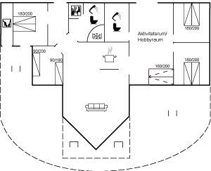 Sehr hübsches und geräumiges Ferienhaus auf einem Gartengrundstück gelegen. Sowohl vom Haus als auch vom Grundstück haben Sie eine schöne Aussicht über den Fjord. Im Aktivitätsraum befinden sich 2 der Schlafplätze auf Doppelschlafcouch.